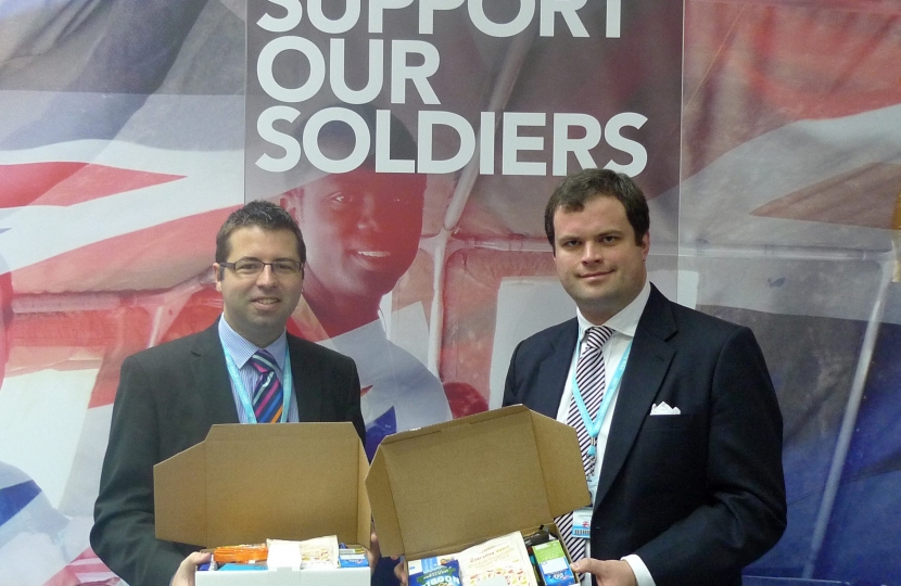 Commenting on the project, Cheylesmore Councillor and Leader of the Conservatives in Coventry, Kevin Foster, said: “I was delighted to be able to take part in this year’s Social Action project at the Conservative Party Conference.  ‘Support our Soldiers’ is an admirable organisation and it’s great to have the chance to send a parcel and a note thanking the troops who do so much to keep us safe.”